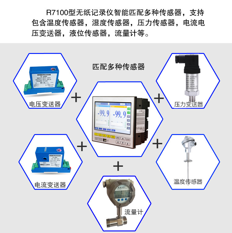 R7100系列超薄宽屏彩色无纸记录仪1-16路wn****输入(可组态选择输入:标准电压、标准电流、热电偶、热电阻、频率、开关量、脉冲等)。可带6路继电器报警输出,6路馈电输出,4个变送输出,RS232/485通讯接口可选择,蓝牙功能,GPRS功能以太网接口,微型打印机接口和USB接口;馈电输出可以给传感器供电;R7100具有强大的显示功能,实时曲线显示,历史曲线追忆,棒图显示,报警列表显示,掉电列表显示。精致的外观设计、人性化操作界面、稳定的功能体现、可靠的硬件品质、精湛的制造工艺,使R7100具有更高的性能价格比。